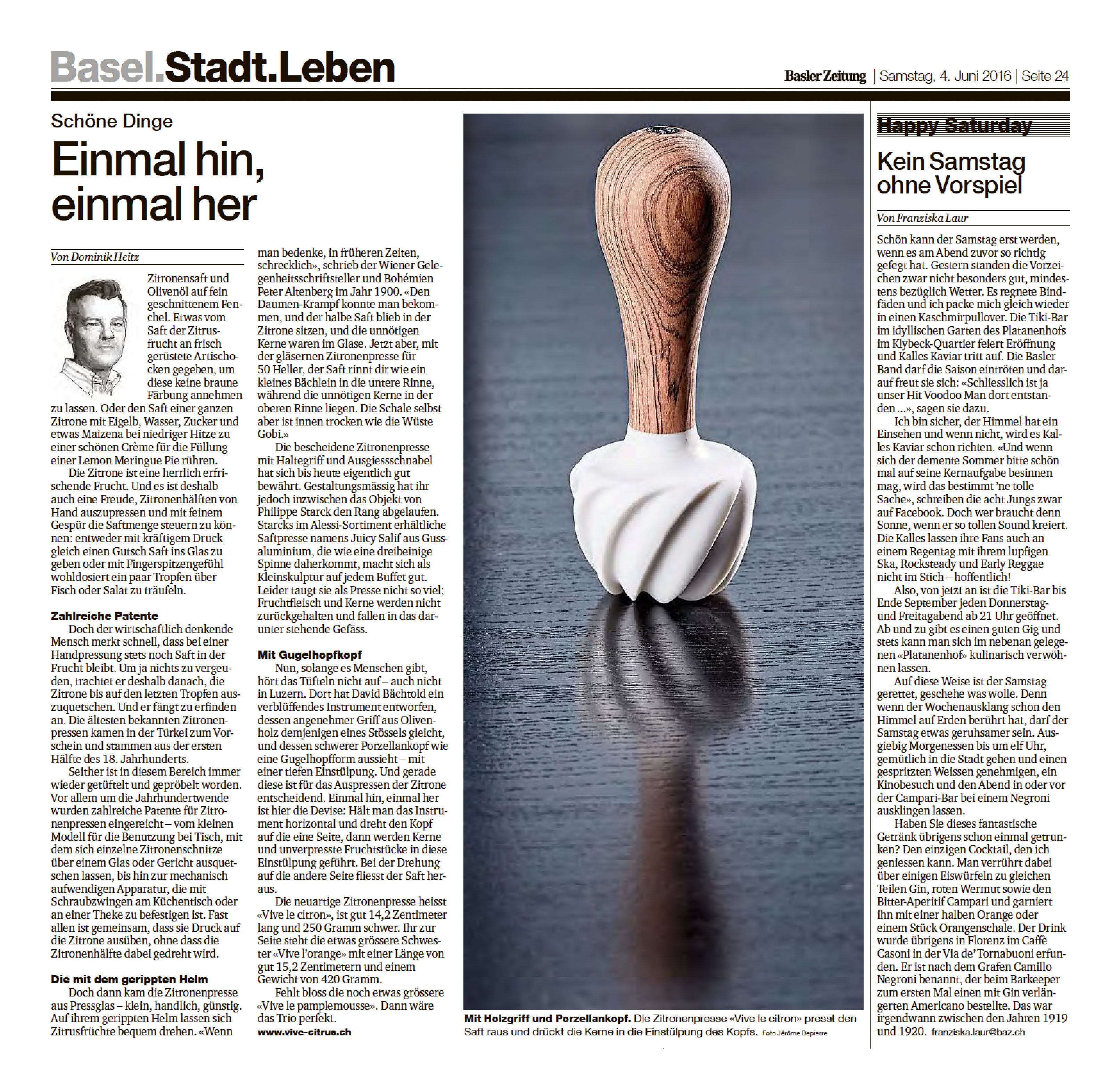 ... und weil selbstgepresster Saft immer noch am besten schmeckt, gibt es eine elegante Möglichkeit, stilvoll zu entsaften: «Vive Citrus» von David Bächtold (www.vive-citrus.ch) …