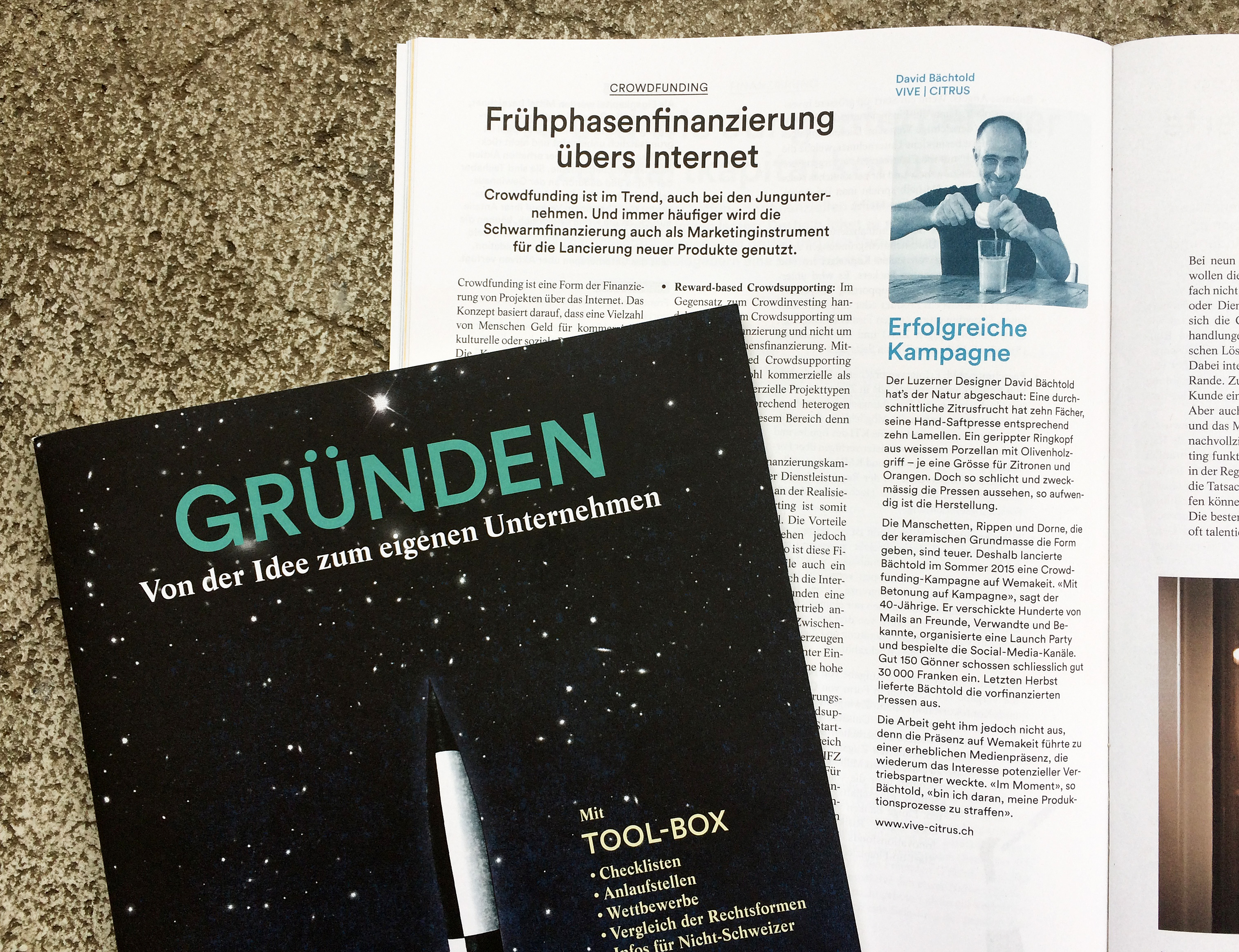 Der Luzerner Designer David Bächtold realisiert derzeit mit Hilfe einer Crowdfunding-Kampagne die Lancierung seiner vielversprechenden Erfindung: eine Zitruspresse …